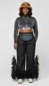 Classic Black (or Custom Colors): The sheer tulle creates dimension while keeping the track pant silhouette versatile enough for casual days or elevated outings.