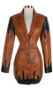 The Denim and Leather Long Sleeve Dress with Zipper Thigh-High Split is a show-stopping piece that combines daring design with modern elegance. Ideal for women who love to push fashion boundaries while maintaining a sleek, polished look.