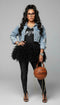 Classic Denim & Leather Contrast: The denim provides a chic, casual base while the leather panels add sleek, edgy sophistication for a runway-ready finish.