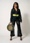 Chic style notes: Introducing our Suede Two-Piece Suit with Jeweled Buttons - a luxurious and sophisticated ensemble that marries the richness of suede with the glamour of jeweled embellishments, perfect for making a statement at formal events.