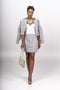 The Zebra Print Two-Piece Suit features a blazer and pants, both adorned with a striking zebra print pattern. The blazer is the standout piece, with its oversized waist bow that adds a touch of drama and femininity. The bow is strategically placed at the waist, creating a flattering and accentuated silhouette which is detachable.