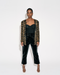 The blazer is tailored to perfection, with a sleek and structured fit that accentuates your figure. It features a classic lapel collar, a single-breasted front with button closure, and long sleeves, creating a timeless and sophisticated look.