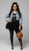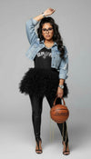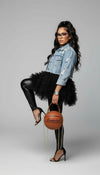 The Spurs Jersey with Tulle Bottom Hem is the ultimate statement piece for women who love mixing sporty staples with chic, fashion-forward elements. Comfortable, playful, and undeniably stylish, it’s a fun addition to any wardrobe.